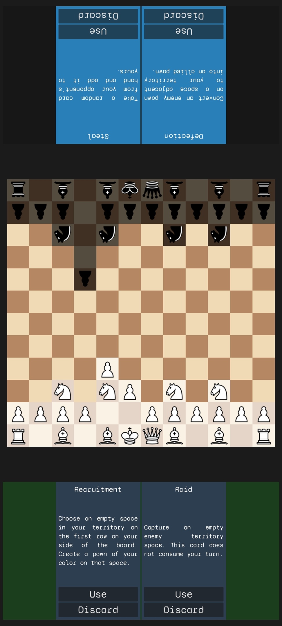 • Chess + Cards: Play a classic chess match on a 12x12 board, but be prepared for rule-breaking effects. Convert enemy pieces, swap positions, or neutralize the board entirely.